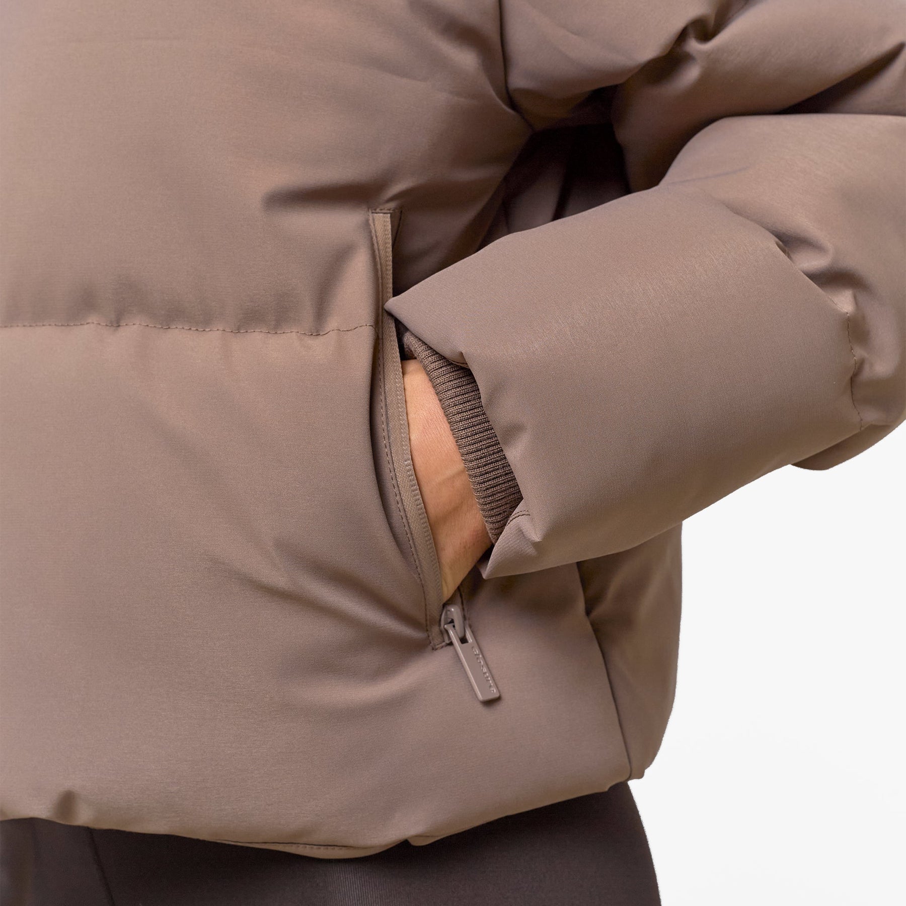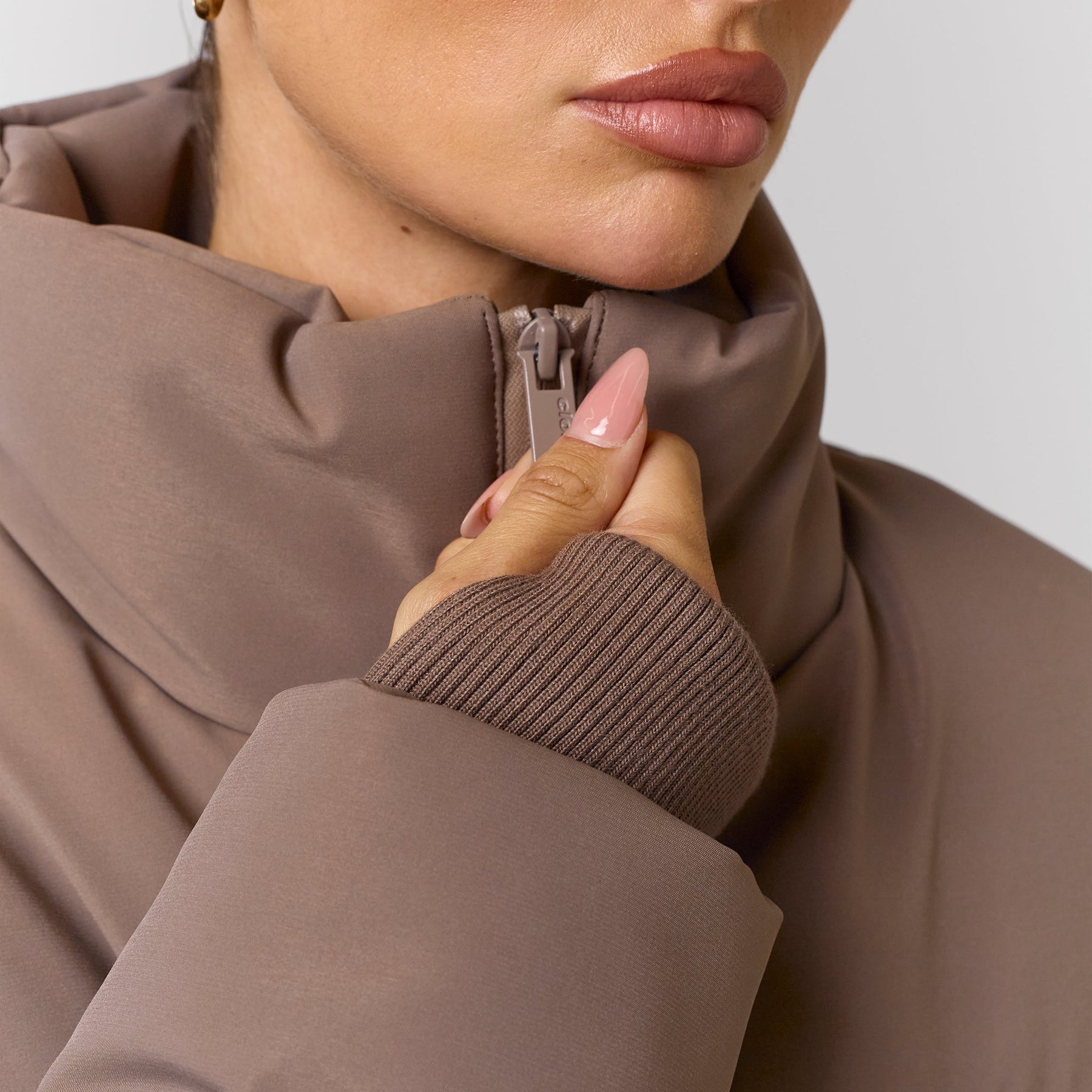 Meet your new winter essential: the Closure London Women's Mocha Puffer Jacket. Crafted in a warm mocha hue, this jacket features a sophisticated funnel neck and a quilted design throughout the body and sleeves, ensuring optimal warmth. The distinctive Closure London logo on the chest adds a touch of signature quality, while the double-ended branded zipper offers flexibility in styling. For a snug and personalised fit, utilise the bungee drawcord and adjuster on the inside of the hem. It's perfect for styling with your casual loungewear or adding an essential layer when the temperature drops.